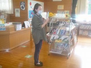 2年生は国語で「お気に入りの本をしょうかいしよう」の学習をしています。今まで読んだ本の中から、一番のお気に入りを友達に紹介する単元です。本の大好きな学年です。だれがどんな本を好きなのか、なんとなく知っています。そこで、図書支援員の先生に紹介することに。最後は、図書支援員の先生にもお気に入りの本を紹介していただきました。もうすぐ夏休み。お友達や先生が紹介してくれた本、是非読んでみてくださいね。