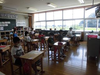 終業式は、密を避けるため放送で行いましたが、子供たちは、教室は代表児童の作文発表や校長の話にしっかりと耳を傾けていました。