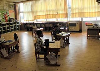 教室で放送を聞く子供たち。背筋の伸びた姿が美しい。