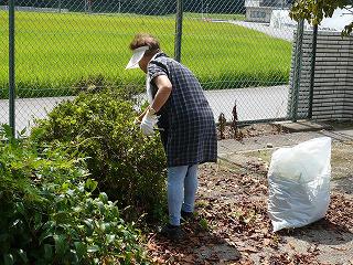 今年は、梅雨の長雨のせいか、8月になってからの高温のせいなのか、校庭のサクラの葉が落ちるのが早く、掃いても掃いてもサクラの木の下が落葉だらけになってしまいます。困っていたところ、交通指導員の葛西様が落ち葉掃きのボランティアに来て下さいました。草取りや植え込みの剪定も。「暑い中をすみません」と言うと、「きれいになった校庭を見ると気持ちがいいわ」と笑顔の葛西様。本当にありがたいです。
