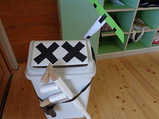 教室のゴミ箱を、とあるゲームのキャラクターにカスタマイズしてみました。「こんなゴミ箱だと、お掃除も楽しくなるかしら。」と、キャラクターに関する小物が、日に日に増加。これで工作後の片付けはばっちりです。