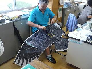 そこで、時期を遅らせて蒔いていたトウモロコシを守るべく立ち上がった農園主任。ダミーのカラスやトンビを設置しました。