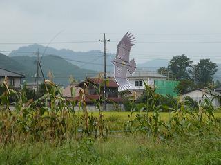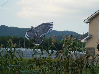 青空に羽ばたくダミートンビを見てツバメが慌てて飛んでいったとの目撃情報がありましたが、本命はカラスです。ダミーたちが農園を守ってくれることを大いに期待しています。