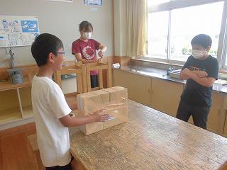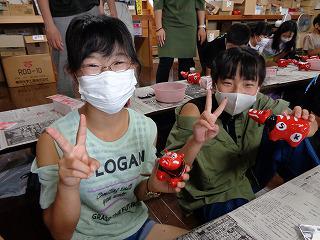 2学期から待望のクラブが始まりました。先週は、組織作りが主だったため、今回のクラブからが本格始動。運動クラブは「ソフトバレー」、創作クラブは「空気でっぽう」です。ソフトバレーでは、サーブがなかなか入らず苦労していましたが「ドンマイ」「だんだん調子よくなってきてるよ」等、声を掛け合い楽しく活動できました。空気でっぽうも、箱を押さえる人とテープを貼る人、二人一組になって協力して作業に取り組みました。完成した空気でっぽうに、お線香の煙を入れて空気の輪が見えると、みんな大はしゃぎでした。次のクラブも楽しみですね。