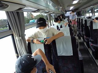 バスの中は2人掛けのシートに一人で座る、全員マスク着用、乗車する時にはアルコールで手の消毒をするなど、できる限りの感染症対策をとりました。子供たちが中心となって歌たりゲームをしたりすることはできませんでしたが、ガイドさんの巧みなリードで楽し