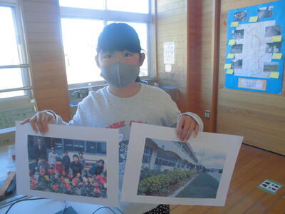 3年生は国語で「わたしたちの学校じまん」の学習をしています。学校のいいところを発表形式で発信していく単元です。「みんな仲良し」「校舎が新しい」「図書室にたくさん読みたい本がある」などなど、自慢したいことが次々と出てきた3年生ですが、発信したいと選んだのは「花壇がきれい」。委員会のお兄さんお姉さんが手入れをしていることや、花に気持ちが温かくなることなど、理由もあります。そこで、週に1度来てくださる図書支援員の先生に、写真なども用いて伝えることにしました。清一小にお越しの際は、学校の自慢の花壇で、是非癒やされてくださいね。
