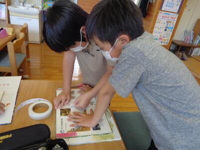 今日は5月の委員会。図書委員はKLVの方を講師に招き、本の修理の仕方を教えていただきました。破れた箇所は、専用のテープで補修します。薄いので台紙から剥がすのに一苦労。テープを貼る段階でも、曲がらないよう、空気が入らないよう気を遣います。初めのうちは時間のかかっていた図書委員さんも、KLVの方に手伝っていただくうちにだんだん手慣れたものに。これから、図書室の本だけでなく学級文庫の本が破れてしまった時も、図書委員さん、よろしくお願いしますね。