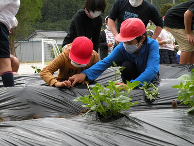 今年は、校舎の南側の教材園にジャガイモとサツマイモを植えたので、子供たちは校庭に出るたびに成長の様子を見たり、こまめに世話をすることができたりします。その分収穫の時期を待つ楽しみも増えることでしょう。