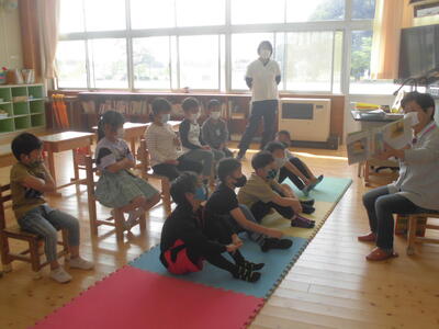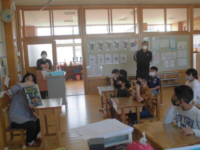 1・2年生の待機の時間に、KLVさんが読み聞かせをしてくださいました。