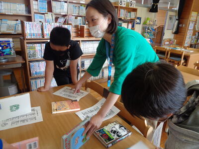 5年生は、国語「図書館を使いこなそう」の学習で、図書支援員の先生に十進分類法を教えていただきました。「物語は9」「理科の本は4」とおおまかな分類は学習済みの5年生。3桁の分類まで知っていると、本がぐんと見つけやすくなることがわかりました。理科や社会、総合で調べ学習をする際には、今日の勉強を生かして、お目当ての本を探してくださいね。