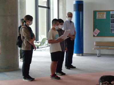 施設の使い方を教えてくださった先生から、この施設が現在放送中の「ドラゴン桜」のロケ地に使われているとお話がありました。多くの子供たちはすでにそのことを知っている様子でした。そして、施設の先生の中に一昨年まで粟野中学校の校長先生だった堀先生がいらっしゃったのでびっくり。清一小が水害にあった時に「中学校においで」と間借りを引き受けてくださった恩人の先生です。堀先生も粟野地区の子供たちが来るのを楽しみにしていてくださったそうです。