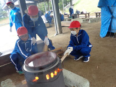土鍋に塩がこびりついてきたら、スプーンでこすってはがします。どの班も根気よくひたすら手を動かし、さらさらでミネラル分が豊富な美味しい塩がたくさんとれました。