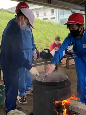 2日目のメインの活動は塩づくりです。1リットルの海水から30グラムほどの塩が取れるそうです。かまどに火を起こし、益子焼の土鍋に海からくんできた海水を入れて水分を蒸発させます。かまどで火をおこすには、火種となる新聞紙の丸め方や薪の重ね方などを工夫しなくてはなりません。それだけに、苦労して火が燃え始めた時の嬉しさは格別のようでした。