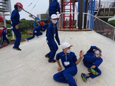 塩づくりが終わり昼食までに時間があったのでアスレチックで遊びました。パワー全開で笑顔いっぱい。夢中で遊ぶ子供たちです。