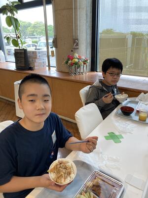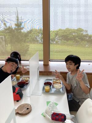 臨海自然教室の最後の食事風景です。食堂での食事の仕方のルールも身に付き、すっかり余裕の表情です。食事の前には、子供たちが順番に話をすることになっていて、毎回どんな話をするか楽しみだったのですが、それも最後となってしまいました。食が細かったのに、この2日間でたくさん食べられるようになった子が何人もいました。