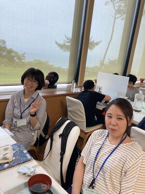 お腹がだいぶ空いたタイミングで、初めての食事タイムとなりました。例年ならばバイキング形式なのですが、感染症対策のためにおかずは弁当での提供でした。席も間を空けて座るなど、密にならないような工夫がたくさんされていました。