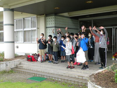 予定より30分ほど早めに学校に到着し、同じバスに乗っていた永野小の皆さんに手を振ってお別れをしました。