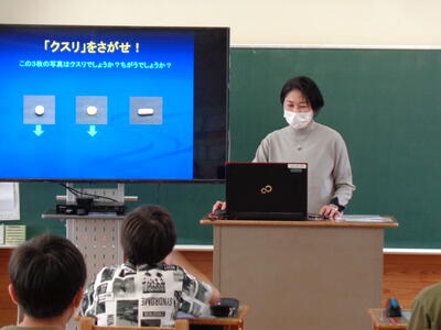 学校薬剤師の坂本愛先生をお呼びして、薬物乱用防止教室を行いました。