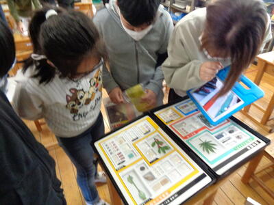 図書委員からの読書クイズは、正解するとしおりがもらえるので、みんな真剣です。