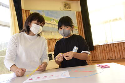 講師に床井典子さんを招き、親子で水引の梅結びに挑戦です。
