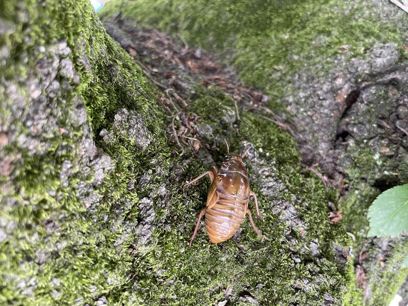 児童が、校庭の桜の木を必死によじ登っているセミの幼虫を大発見!!