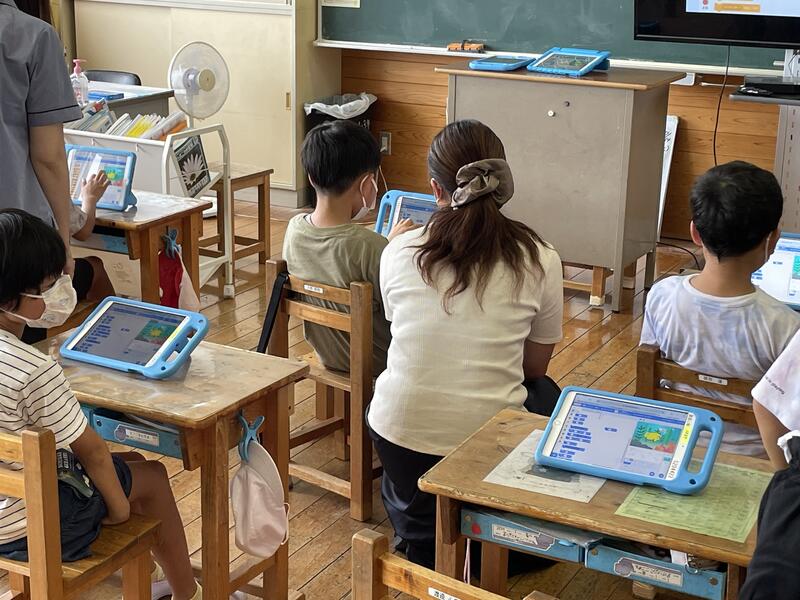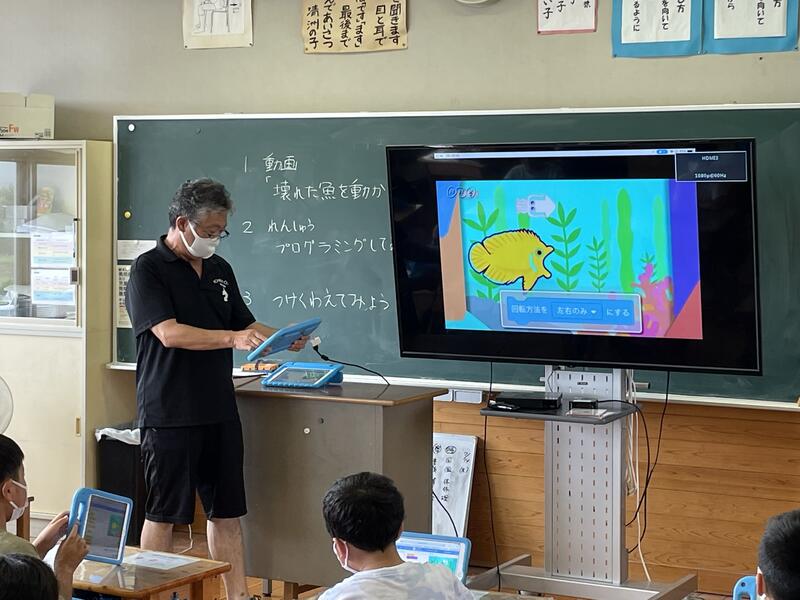 3・4年生が、ICT支援員さんと一緒にプログラミング学習を行いました。
