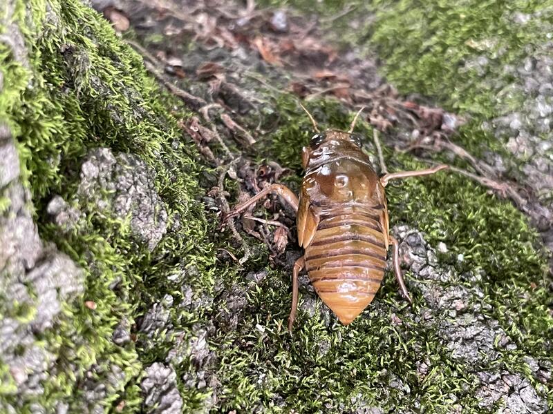 児童が、校庭の桜の木を必死によじ登っているセミの幼虫を大発見!!