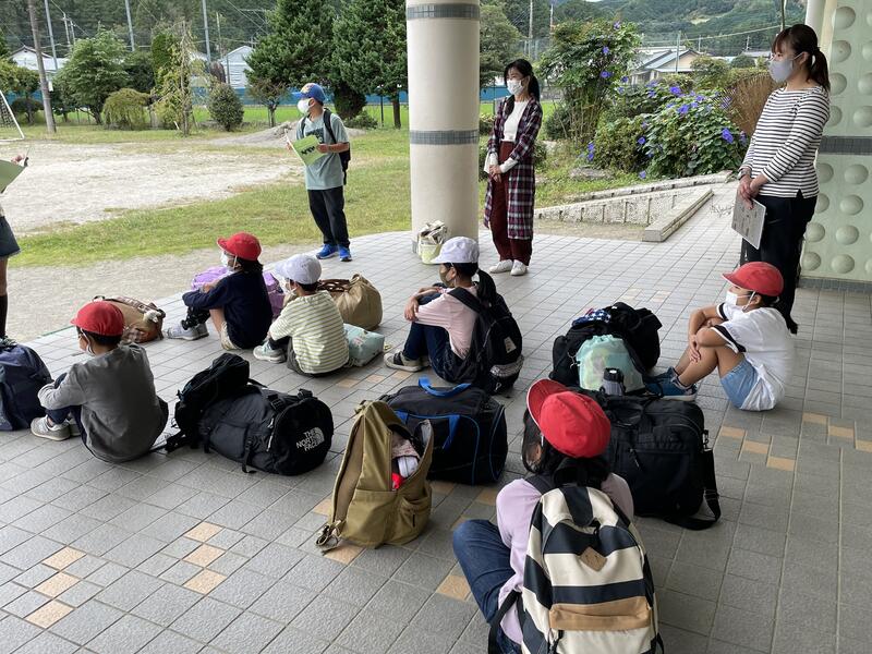 粟野地区の小学校が合同で、板荷の自然体験交流センターで自然生活体験学習をおこないます。