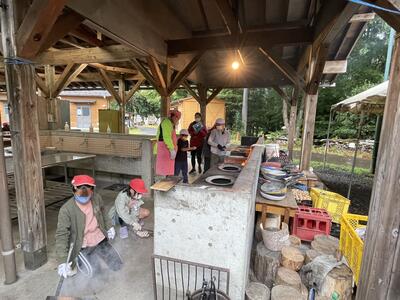 四苦八苦しながらも、5グループ全部の班が火を起こすことができました。この火を使って、今からご飯を炊きます。