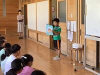 式の後には、児童指導主任が、夏休みの過ごし方について全体指導を行いました。