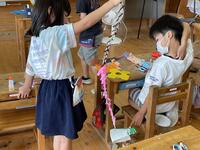 1・2年生が図工の時間に折り紙を使って飾りを作りました。