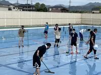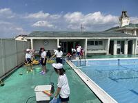 一昨日の28日(日)には、奉仕作業で保護者の皆様にプールの本体の掃除をしていただきました。