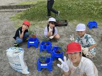 1・2年生が生活科の学習の一環で野菜の苗を植えました。