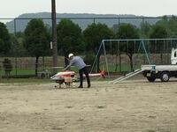 雨により、ラインがほぼ消えかかっていたため、まだ見えるうちに実施したいと思っていました。この日も天候が不安定なので、降り出す前に急いで行いました。