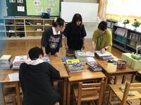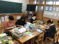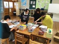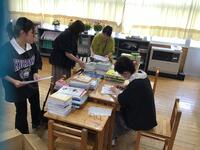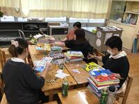図書支援員と4名のボランティアの方々が、学習室で今年度購入した新刊図書の受入れ作業をしてくださいました。本当にありがとうございます。