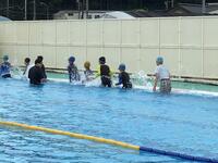 また、全学年だと流れるプールも容易にできます。低学年だけではプール全体の水量を動かすことは困難ですが、高学年生の力を発揮する絶好の機会です。後半は、低学年と中高学年に分かれて活動しました。