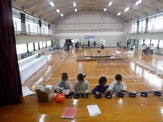 通常の清掃が終わると、5時間目は卒業式会場づくりの時間です。1年生から5年生28名がフルに働き、当日に近い状態に整いました。