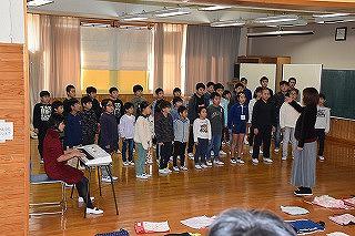 全校生による息の合った群読や明るい歌声も粟野中学校の3階フロア一杯に響き渡りました。