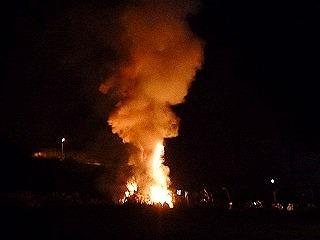 正月の松飾り・しめ縄を持ち寄り・だるま等を一箇所に積み上げて燃やす火祭り行事です。