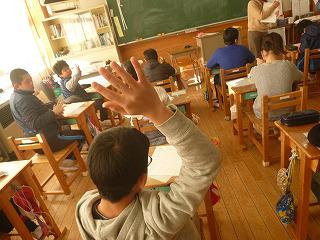 続いて1年生の国語と社会の授業を見ました。落ち着いた雰囲気の中、学習に真剣に取り組んでいました。国語は話し合う場面で中学生の動きがあったので、その間に教科書の文字の大きさを確かめた子がいました。さすが清一の子、目の付け所が違います。中学生になってもしっかりやっていけますね。