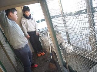 冷え込む朝が続いていますが、登校後一番の仕事はウサギの世話です。