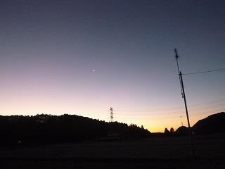 【天体観測Ⅰ】 明けの明星が1月2日はまるで三日月のイヤリングのように輝いていました。3日の同じ時刻になると月と星は離れ、4日は更に遠くになっていました。地球は確かに太陽系のまわりで公転していることを実感しました。