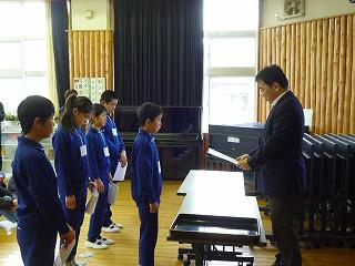業間の時間に1月24日に行われた縄跳び大会の表彰状式がありました。