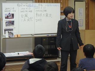 今日は宿題を出しました。家族から2011年3月11日の話を聞くことです。また、災害に遭遇したら、どんな行動をとったらいいかについてもご家族で話し合っていただければと思います。