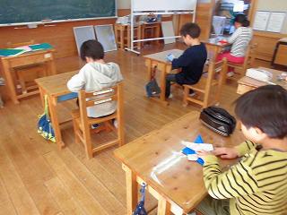 さて、1年生の教室の廊下を通ると、真剣に折り紙をしていました。かなり難しい折り方のようです。1回折るごとに確認しながら進めていました。最終的にはどんな形に仕上がるか楽しみです。そして誰のために折っているのかな?