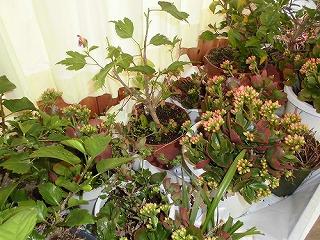 寒いのが苦手な花々は、屋内の日差しのよい窓際に置いて冬越えをします。