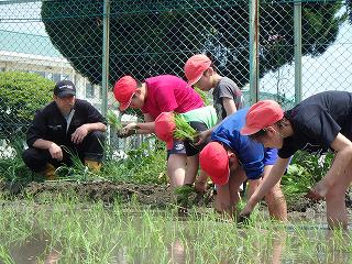 次に田んぼに入って実際に田植えです。最初はバランスを崩して倒れそうになっていた子ども達も、慣れてくると手つきもよくきれいに植えることができるようになり頼もしく思いました。