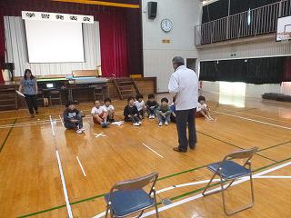 3・4年生は神山一晴さんから聞いた昭和30年頃の清一小の様子を劇で発表します。そこで、内容の確認を神山さんにお願いしました。「一度聞いただけで、ここまでの劇にしたのはすごい!」と褒めていただきました。子どもたちから当時のやりとりや道具についての質問にも丁寧に答えていただきました。