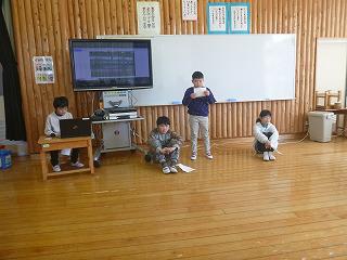 清洲のためにどんなことができるかと話し合い、まず第一弾として、昔の清洲を3・4年生に教えてくださった方々にお礼をすることになりました。それが今日です。今の清一小について発表しました。授業のこと、遊びのこと、給食のこと、校舎のことをグループごとに話しました。