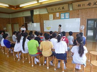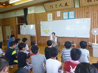 今日は深程在住の語り部、杢師八重子さんから「カッパ伝説」「彦五郎渕」「石神様」の3つのお話を聞きました。5・6年生も総合的な学習の時間に清洲の歴史や史跡を調べているので、一緒に話を聞きました。